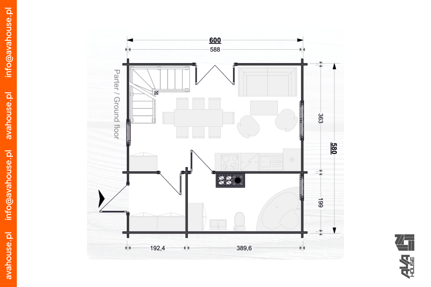 Wnętrze zostało podzielone tak, aby zapewnić komfort całej rodzinie. Duże, podwójnie przeszklone okna (technologia zespolona) gwarantują doskonałe doświetlenie.