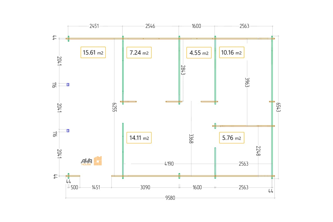 - Wymiary zewnętrzne: 6,5 x 9,6 m