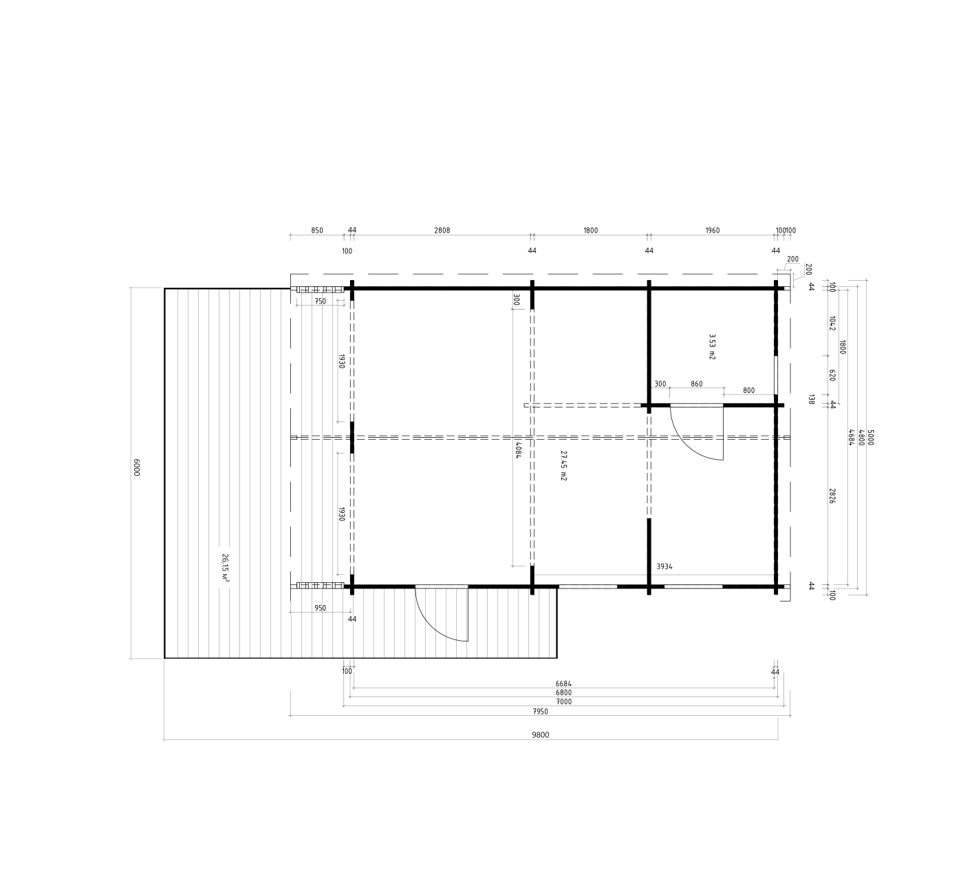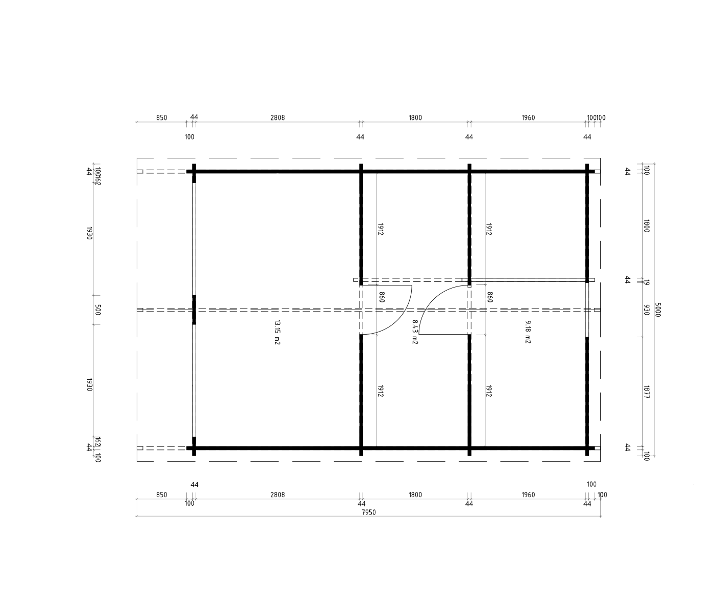 - Grubość ściany: 44 mm - zapewniająca doskonałą izolację termiczną.