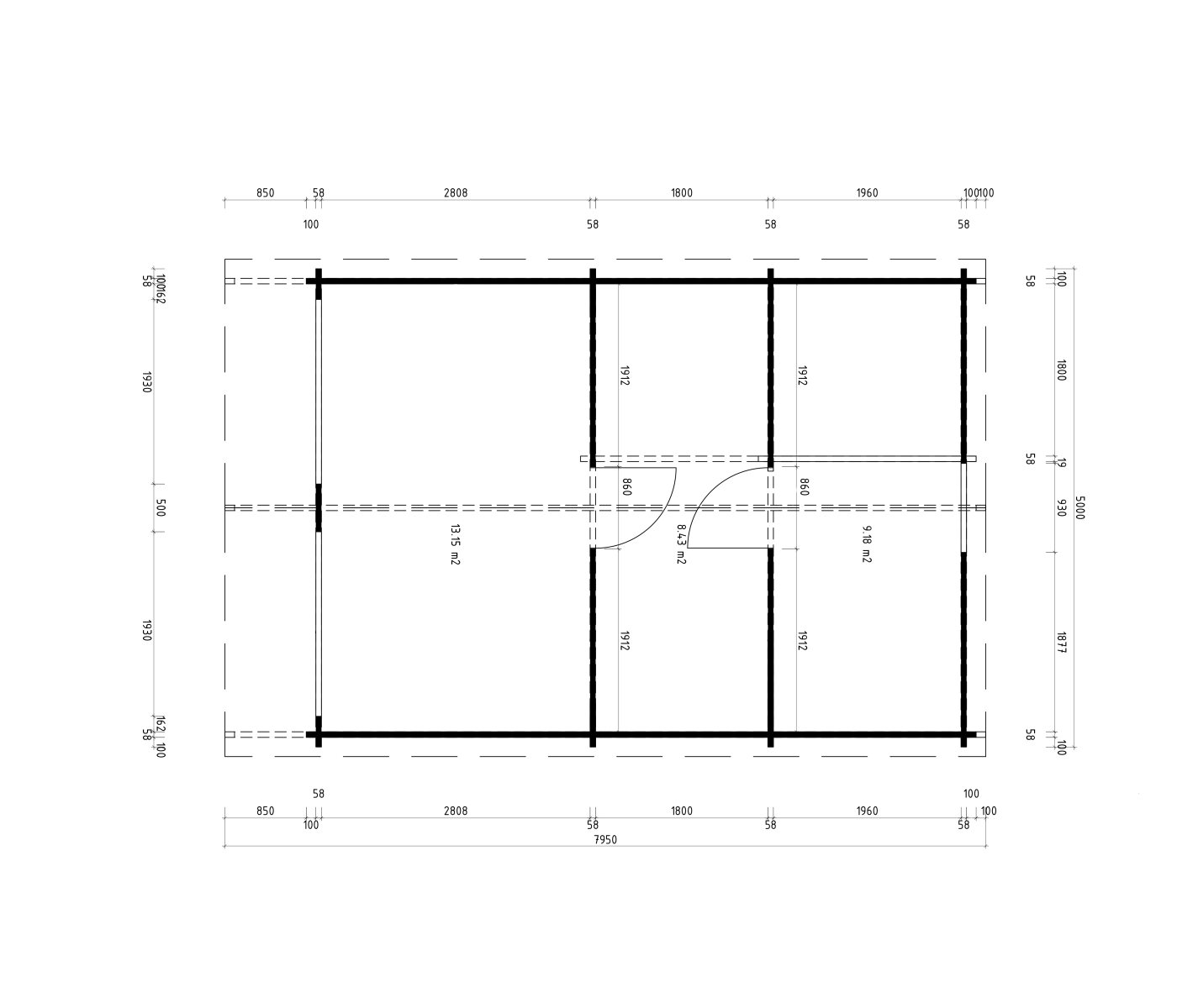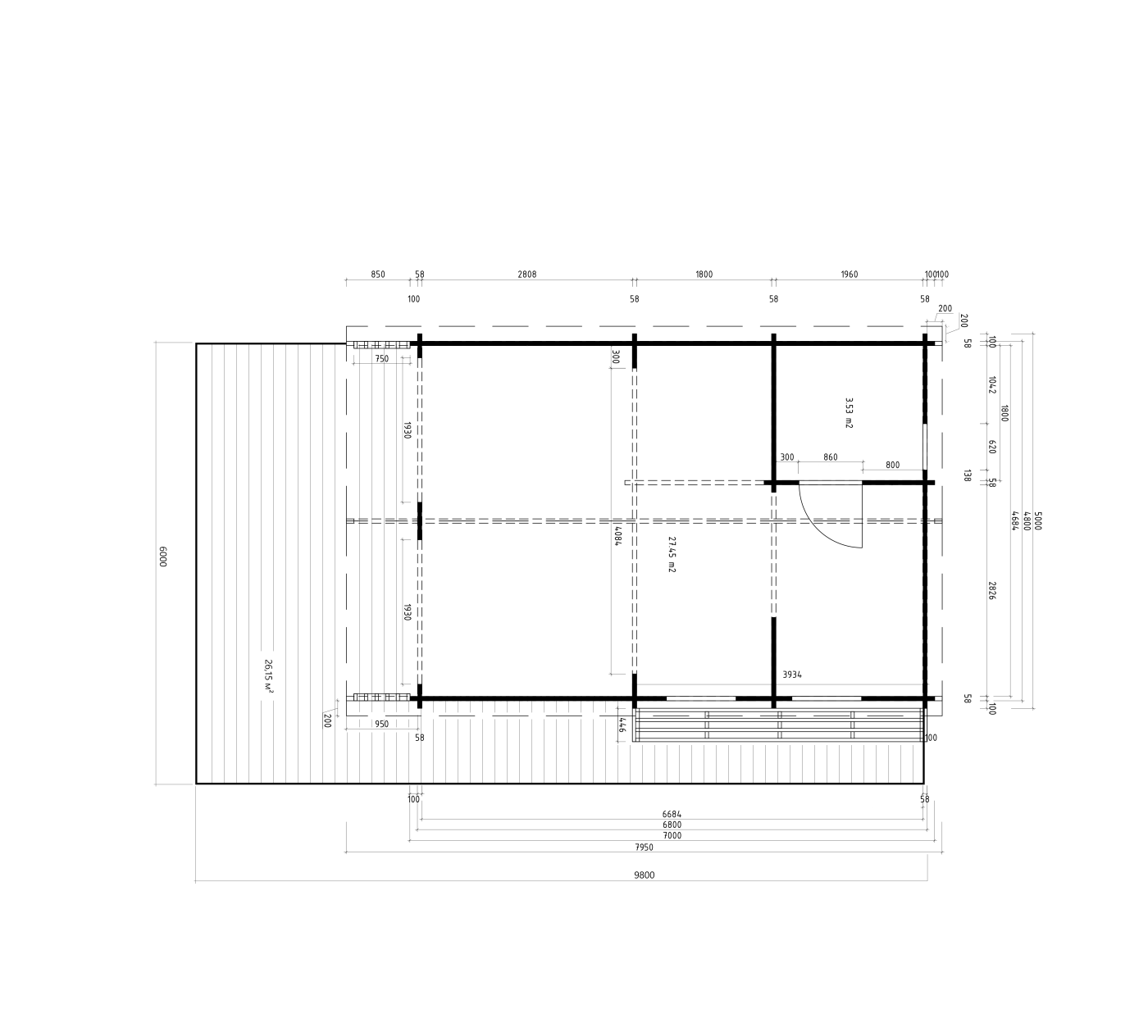 - Grubość ścian: 58 mm, zapewniająca odpowiednią izolację termiczną, co umożliwia komfortowe korzystanie przez cały rok.